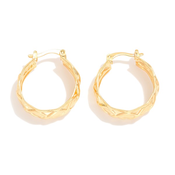 Metal Tone Flat Hoop Earrings Featuring Lattice Detail