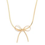 Metal Herringbone Chain Necklace With Tied Bow Pendant