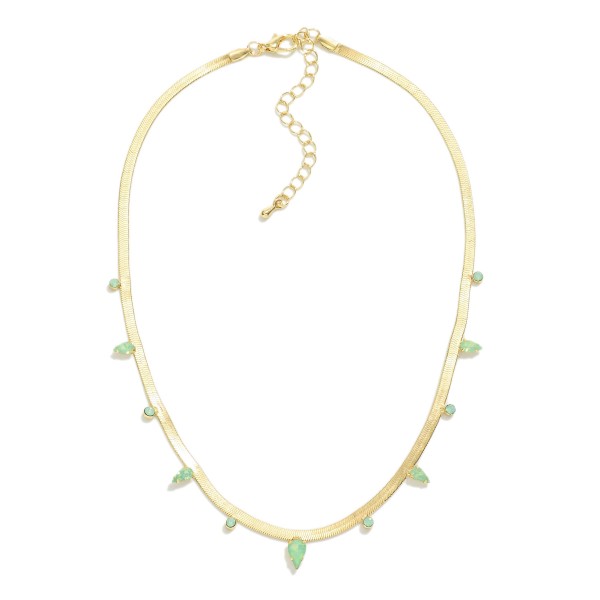 Metal Herringbone Necklace With Fixed Rhinestone Stations