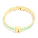 Metal Hinged Bangle Bracelet With Gold Tone Bar Closure