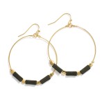 Metal Tone Hoop Drop Earrings Featuring Wooden Rectangle Beads