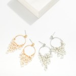 Metal Tone Post Drop Hoop Earrings Featuring Pearl Tassel Details