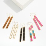 Metal Rectangle Drop Earring Featuring Wood Detail