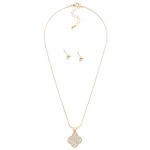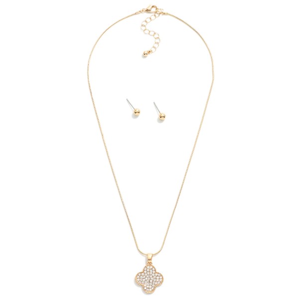 Metal Tone Snake Chain Necklace Featuring Rhinestone Studded Clover Pendant