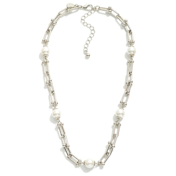 Metal Tone U Link Necklace Featuring Pearl Stations