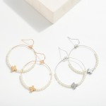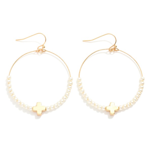 Metal Wire Drop Hoop Earrings Featuring Pearl Beaded Details & Metal Criss Cross