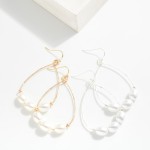 Metal Tone Wire Teardrop Drop Earrings With Beaded Pearl Details