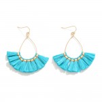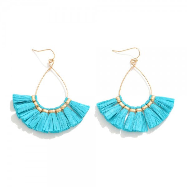 Metal Wire Teardrop Drop Earrings With Raffia Tassel Details