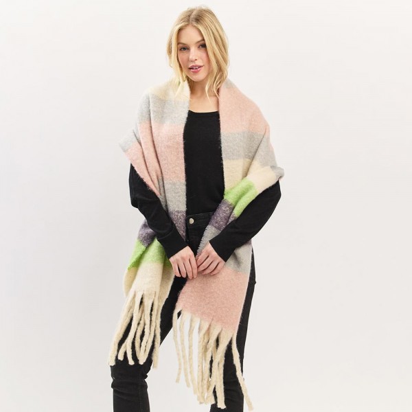 Multi Color Stripe Fuzzy Knit Scarf With Tassel Detail