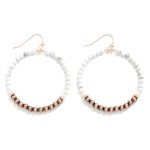 Natural Stone and Brushed Metal Tone Beaded Hoop Drop Earrings