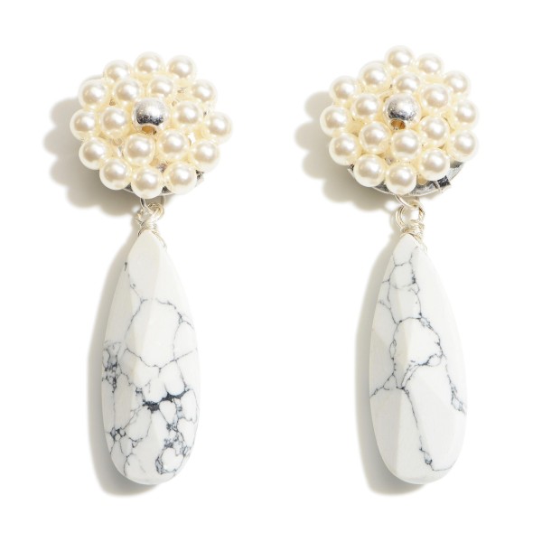Natural Stone Drop Earrings Featuring Faux Pearl Accents.