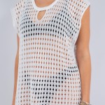 Open Hole Crocheted Swimsuit Coverup With Shoulder Cutouts