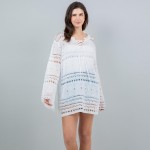 Open Knit Flare Sleeve Swim Suit Cover Up With Cross String Tie Detail
