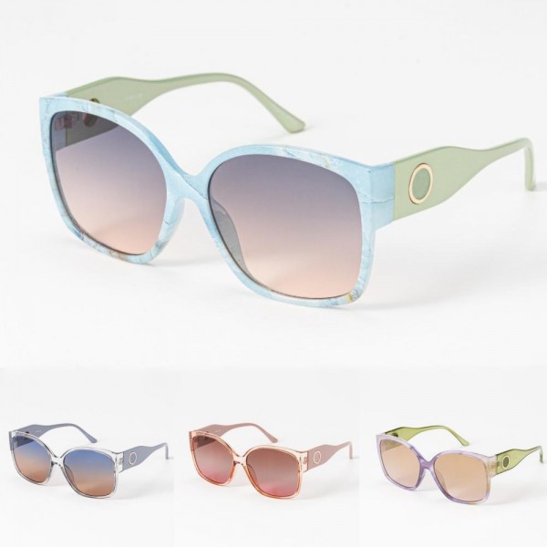 Oversize Rounded Square Sunglasses With Gradient Lens & Gold Circle Detail