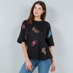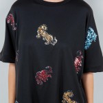 Oversized Cropped Boxy Tee With Sequin Tigers