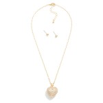 Paperclip Chain Link Necklace Featuring Puffy Rhinestone Pave Heart Pendant