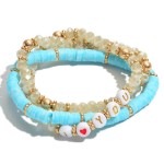 3 PC Rubber Heishi Beaded "I Love You" Stretch Bracelet Set.