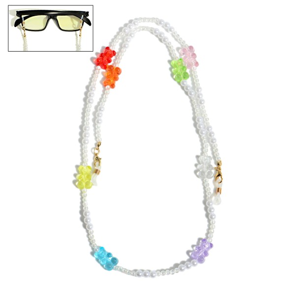 Pearl Beaded Glasses/Sunglasses Chain Featuring Candy Bear Accents