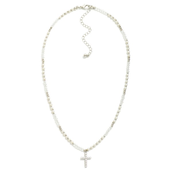 Pearl & Faceted Bead Beaded Necklace Featuring Cubic Zirconia Cross Pendant