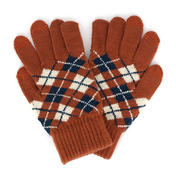 Plaid Knit Gloves With Touch Screen Compatibility