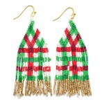 Plaid Seed Bead Tassel Drop Earrings
