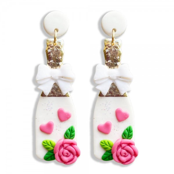 Polymer Clay Valentine's Day Champagne Bottle Drop Earrings