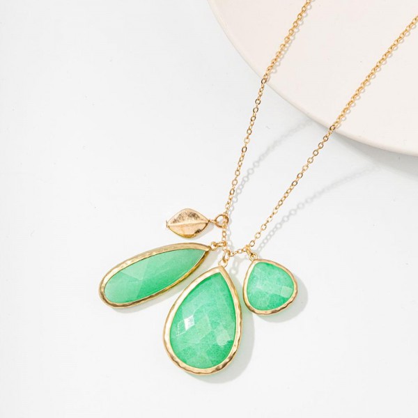 Princess Inspired Natural Stone Three Pendant Necklace with Gold Details.