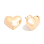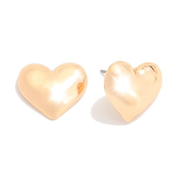 Puffy Metal Tone Heart Stud Earrings