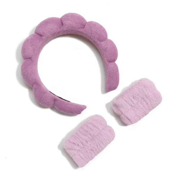 Puffy Plush Spa Headband With Matching Face Wash Wrist Bands