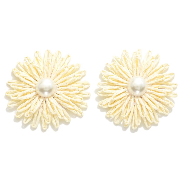 Raffia Flower Oversized Stud Earrings With Pearl Focal