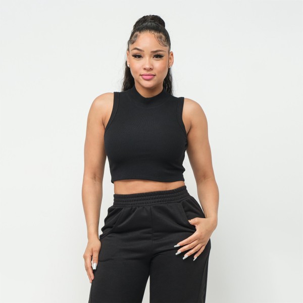 Rayon Ribbed Stretchy Mock Neck Crop Top