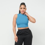 Rayon Ribbed Stretchy Mock Neck Crop Top
