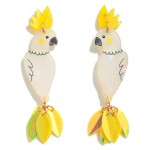 Resin Parrot Drop Earrings With Iridescent Tassel Feather Details