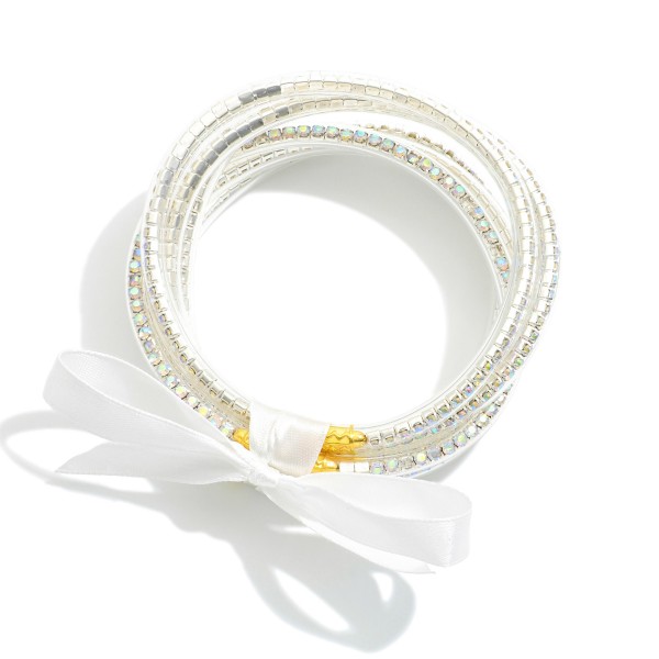 Rhinestone Filled Jelly Bangle Bracelet With Bow Accent