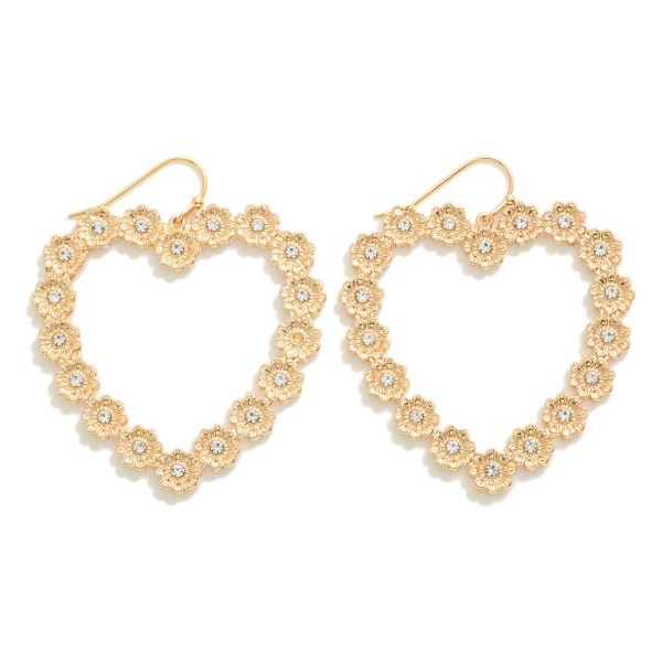 Rhinestone Accented Metal Flower Heart Drop Earring