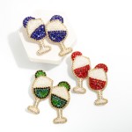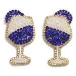Rhinestone And Seed Beaded Bubbly Drink Drop Earrings