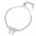 Rhinestone Studded Bracelet With Bow Station & Adjustable Chain Link Drawstring Closure
