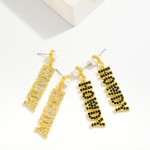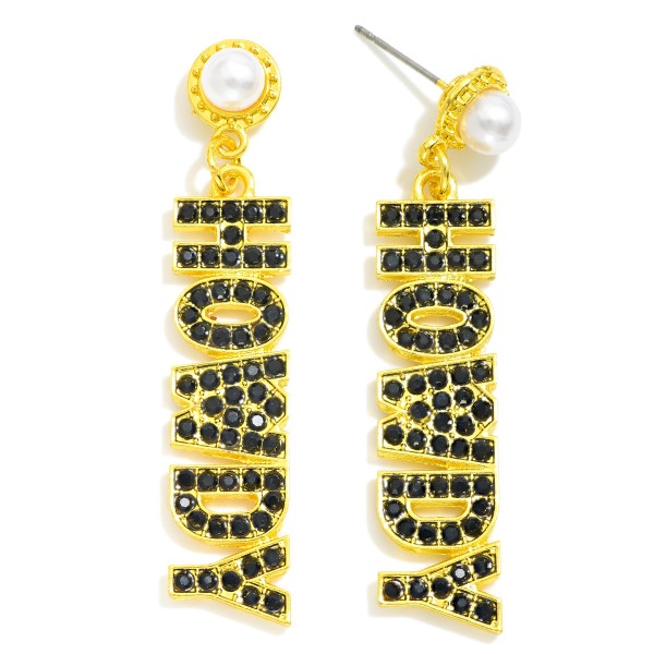 Rhinestone Studded "HOWDY" Drop Earrings With Pearl Stud Posts
