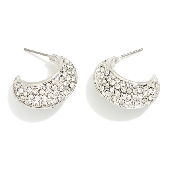 View more Rhinestone Earrings, Hoop Earrings, Huggie Hoops, Silver Tone