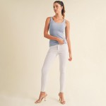 Ribbed Seamless Scoop Neck Tank Top Featuring Built-in Wireless Bra With Removable Cups