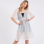 Scalloped Open Knit Swim Suit Cover Up With Lace Neck Line