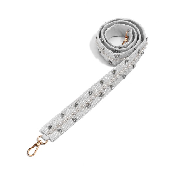 Seed Bead Bag Strap With Pearl & Rhinestone Detail