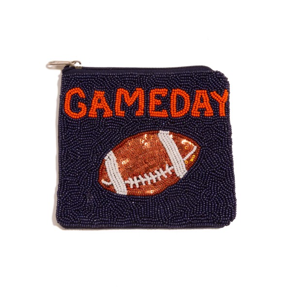 Seed Bead 'GAME DAY' & Sequin Football Coin Pouch