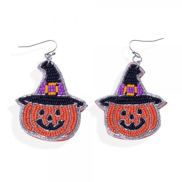 Seed Bead Jack-O'-Lantern Witch Post Drop Earrings