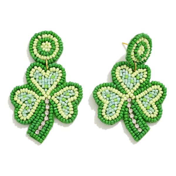 Seed Beaded Clover Drop Earring With Rhinestone Accents