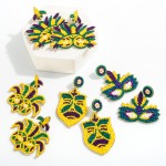 View more Seed Beaded, Mardi Gras, Drop Earrings