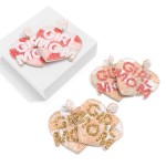 Seed Beaded Plaid Heart 'Girl Mom' Drop Earrings