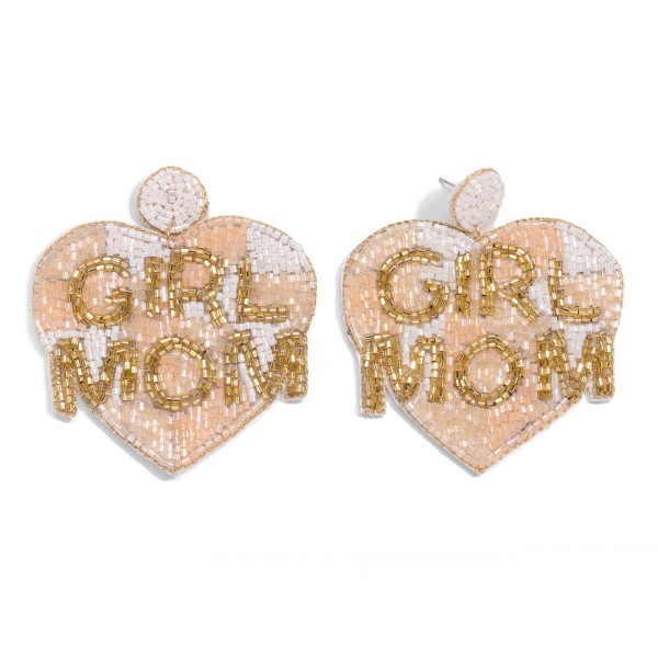 Seed Beaded Plaid Heart 'Girl Mom' Drop Earrings
