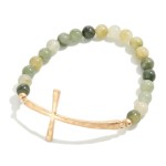 Semi-Precious Stone Beaded Stretch Bracelet With Cross