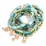 Set of Eight Mixed Media Beaded Stretch Bracelets Featuring Gold Tone Charms